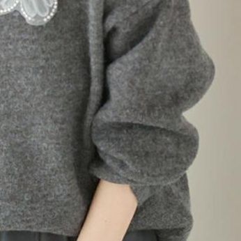 胸元の立体的な花柄レース装飾が印象的な、上品で可愛らしいニットセーターです。