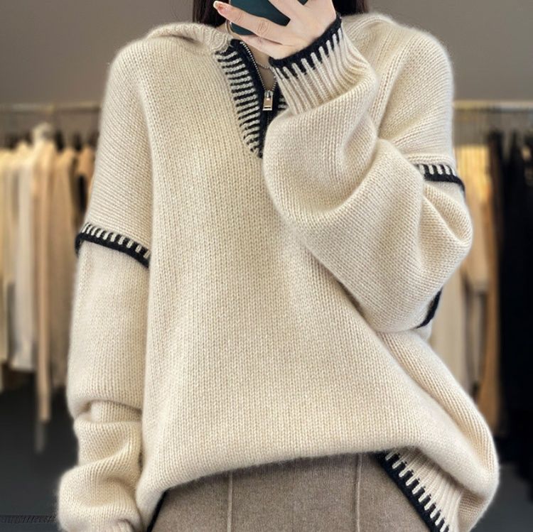 襟元のハーフジップデザインが特徴的なニットセーターです。