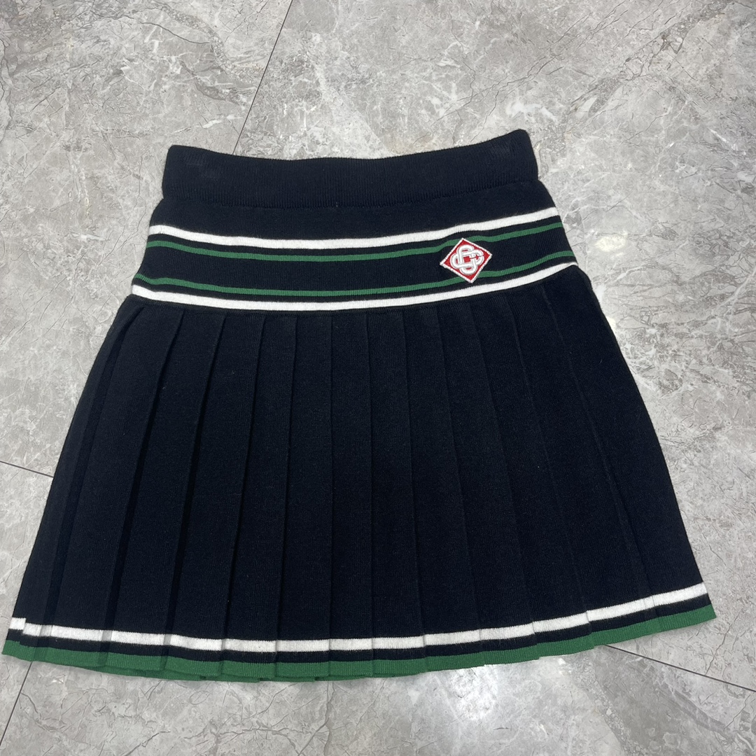 プリーツスカートはウエスト部分にボーダーラインが入り、裾にもアクセントラインが施されています。