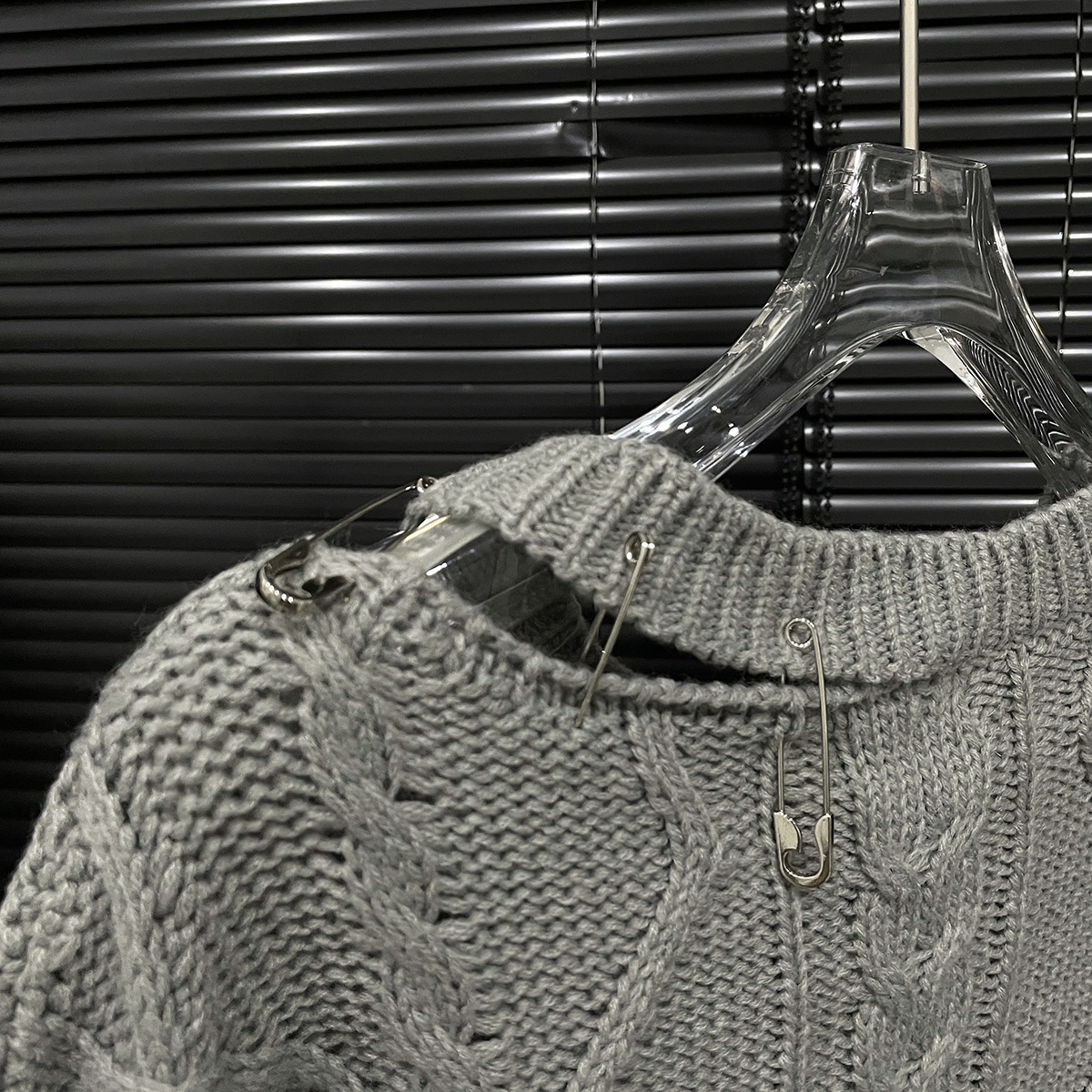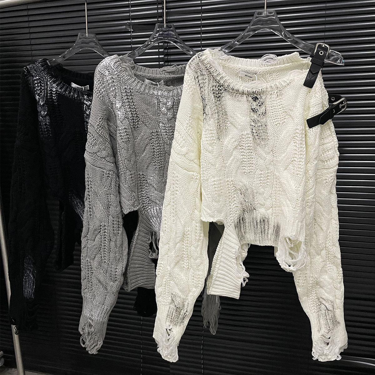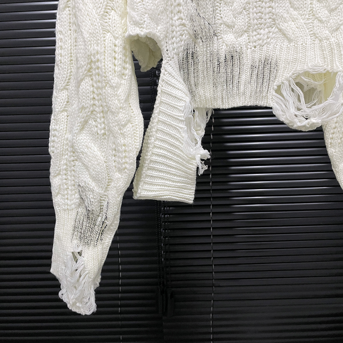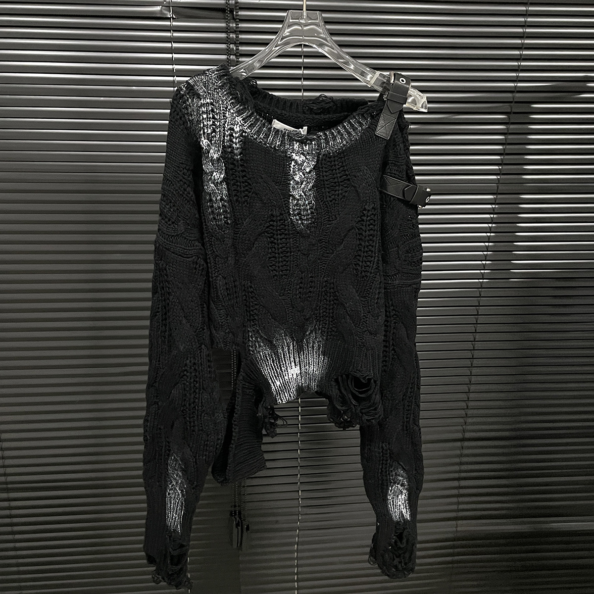 大胆なダメージ加工が施された個性派デザインのセーターです。